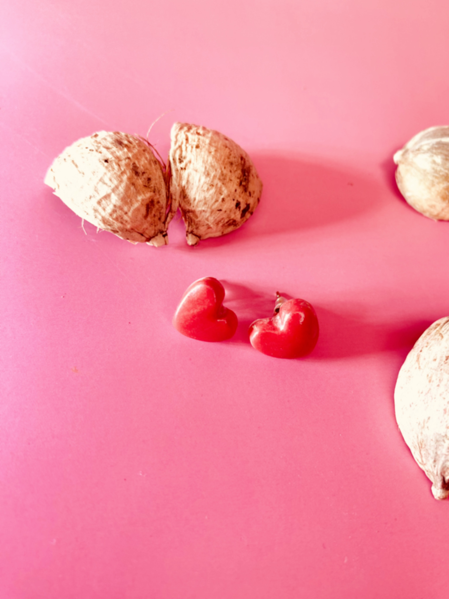 Les coeurs sont réalisés en porcelaine délicate, cuite une première fois à 1000°C, puis une seconde fois à 1280°C, ce qui leur confère toute leur douceur, leur préciosité et révèle leur rouge flamboyant.