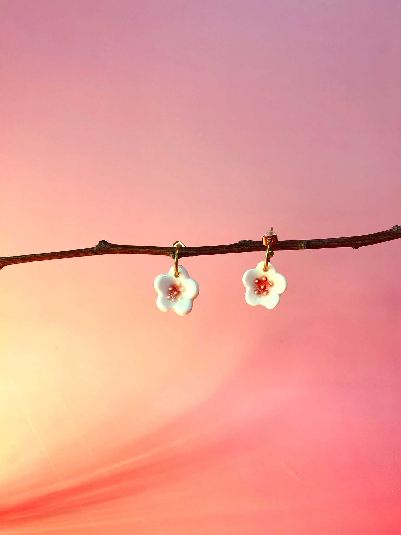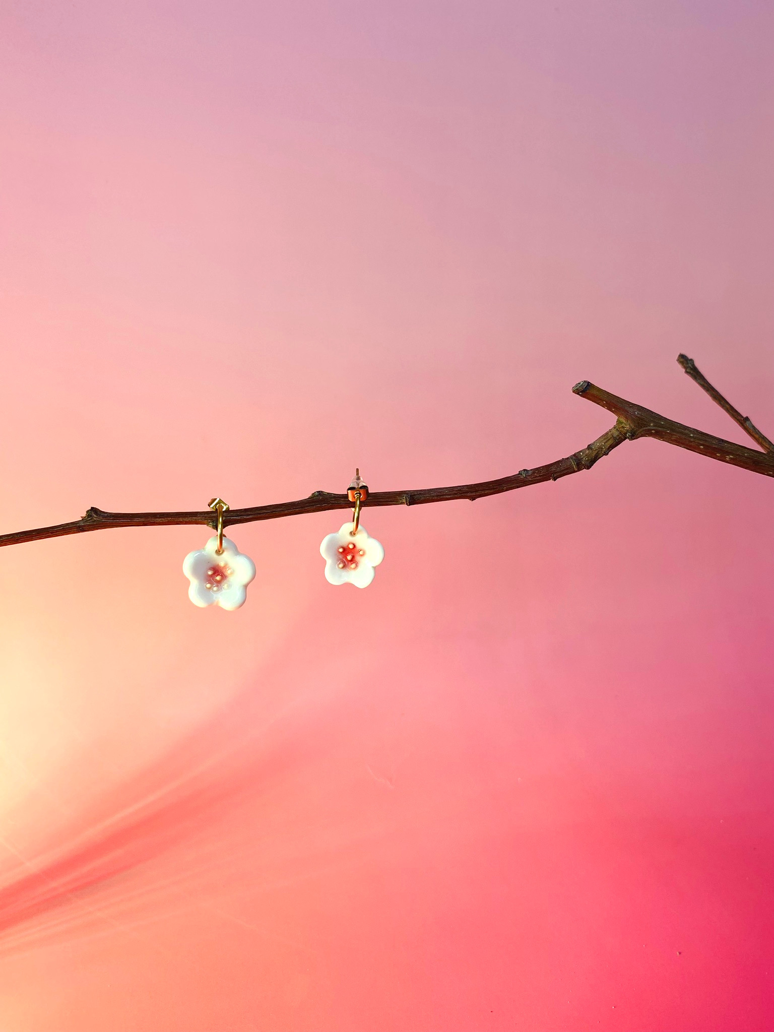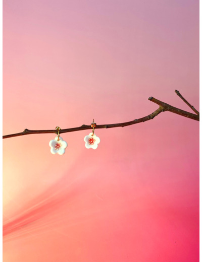 Ces boucles d'oreilles Sakura en porcelaine blanche sont des petites brises de printemps qui viennent se poser délicatement sur vos oreilles !