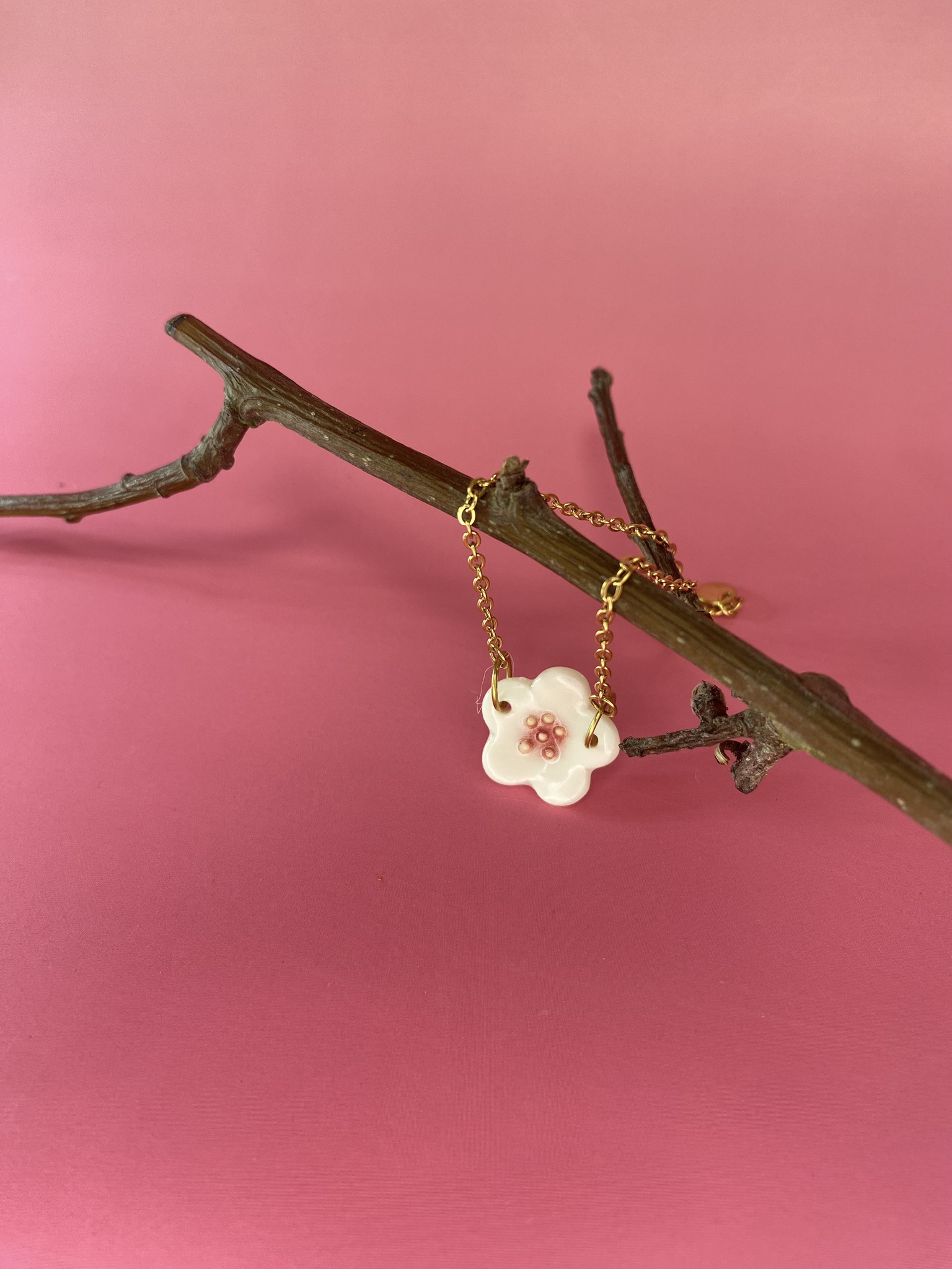 Ce bracelet Sakura en porcelaine blanche est un souffle de printemps qui se dépose doucement sur votre poignet !
