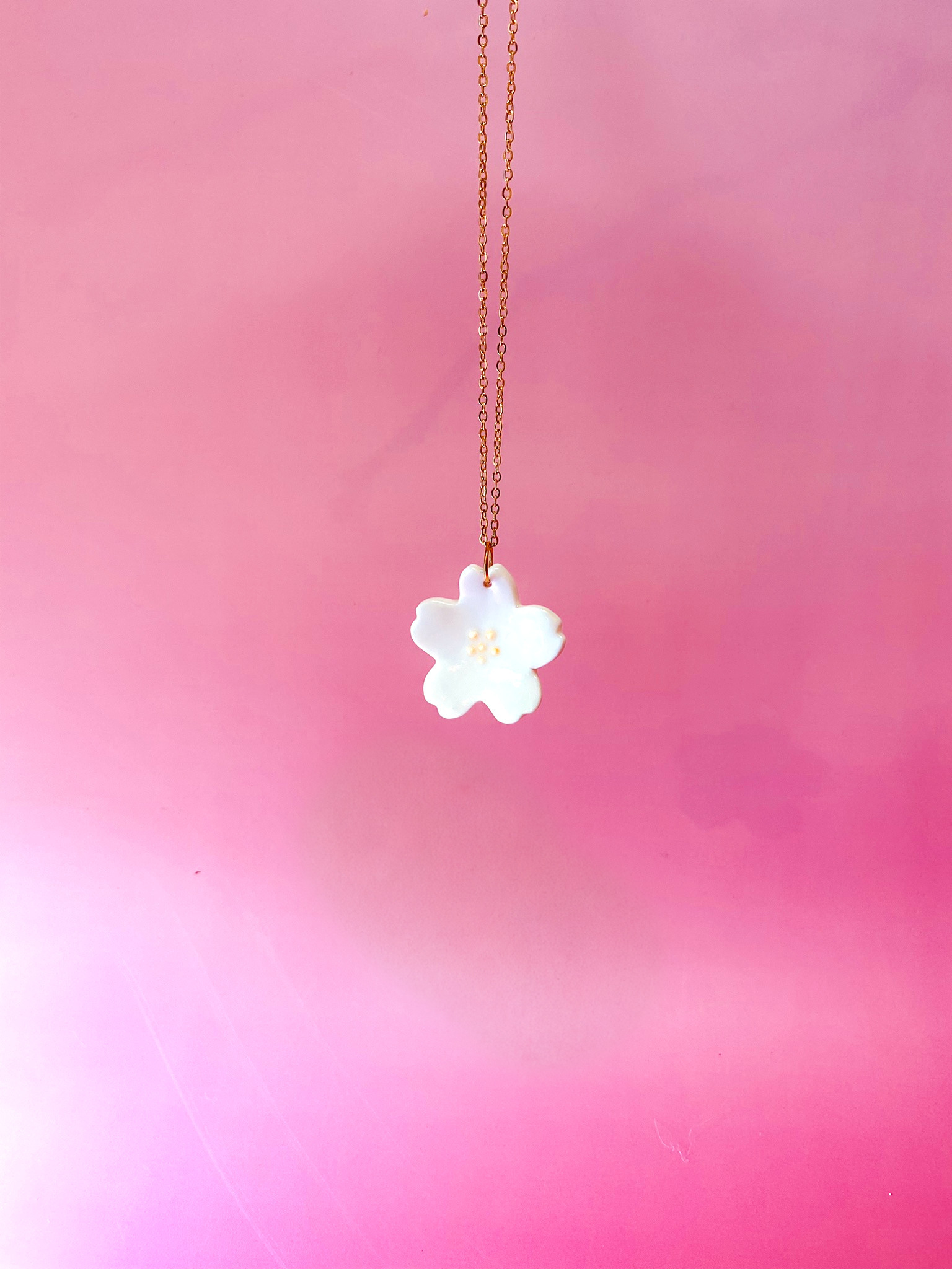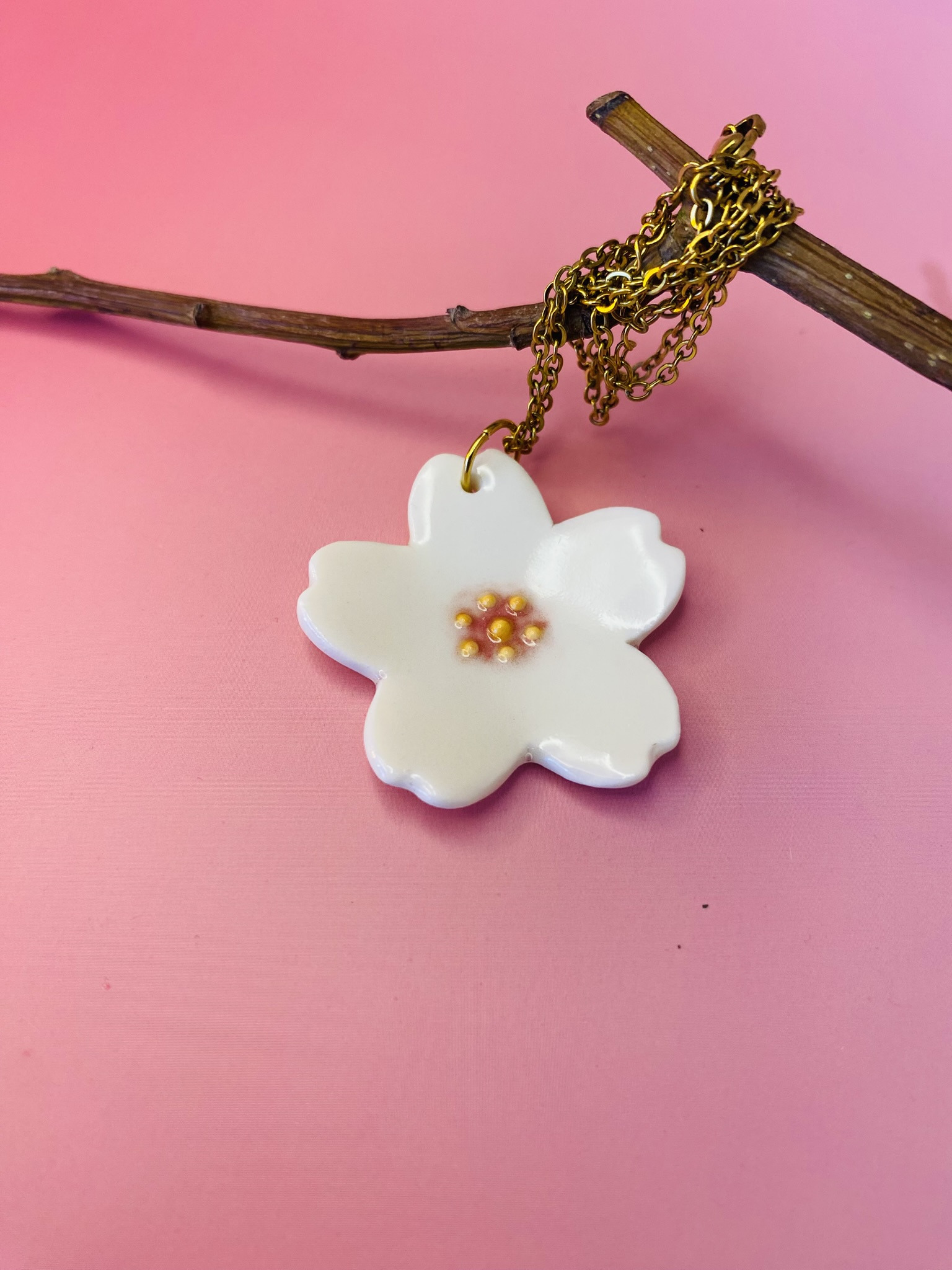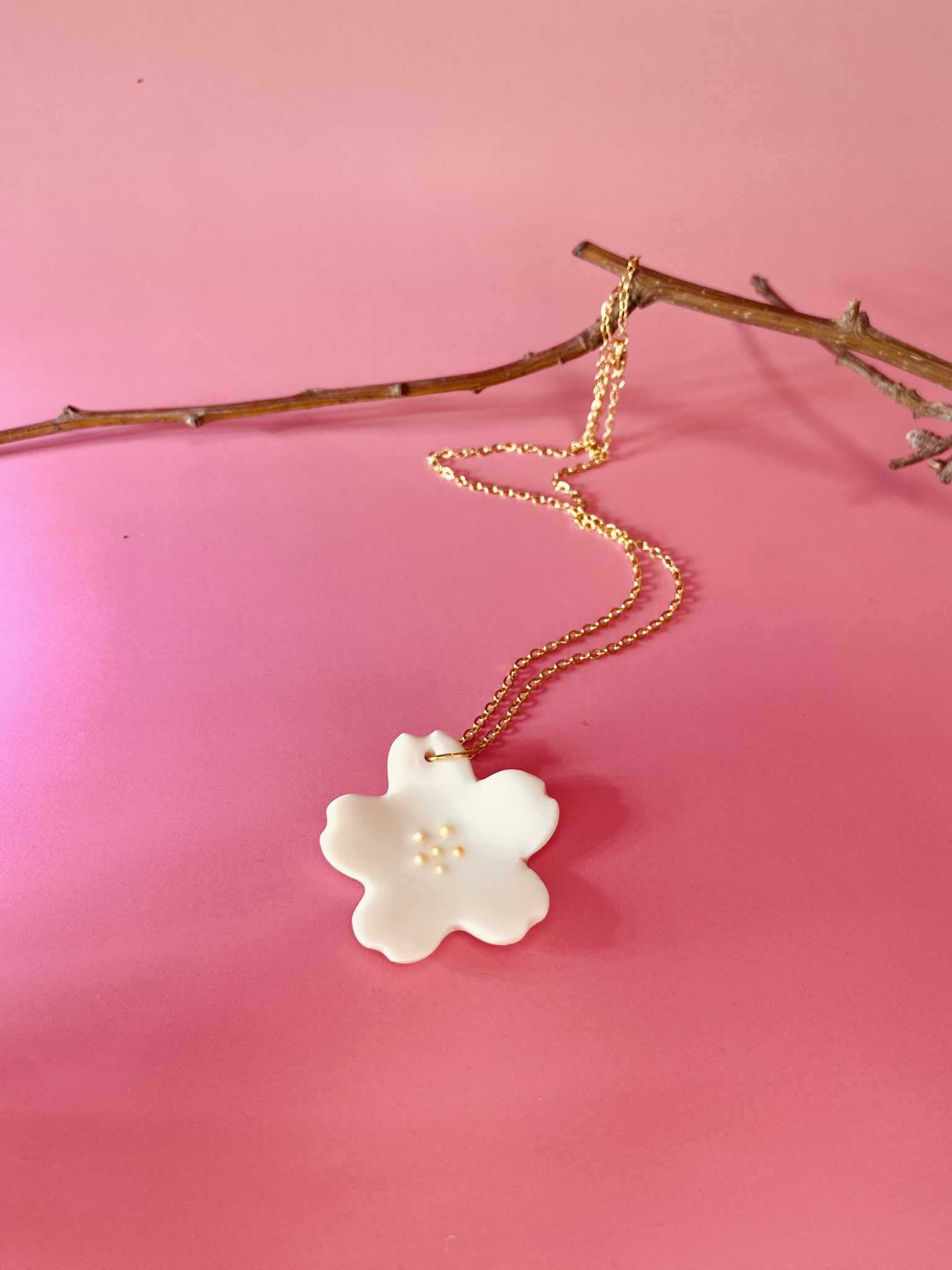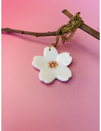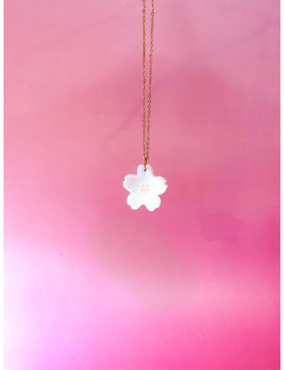 Ce collier Sakura en porcelaine blanche est un souffle de printemps qui se dépose doucement sur votre peau.