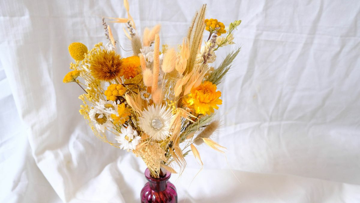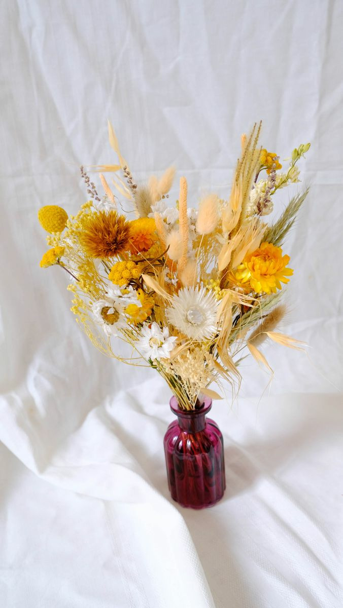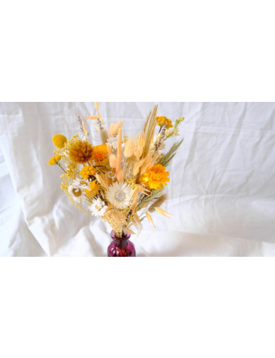 Bouquet composé de fleurs séchées et stabilisées.
