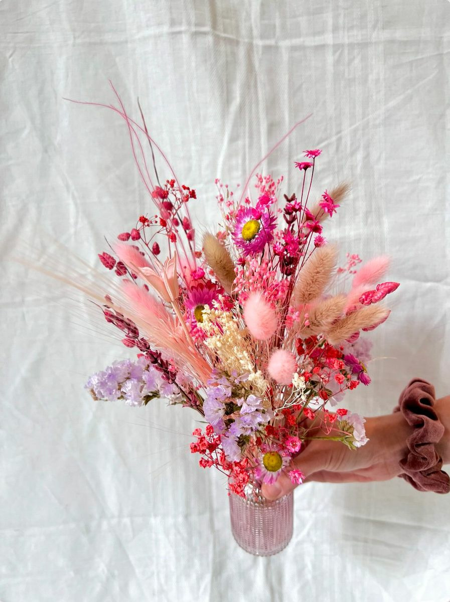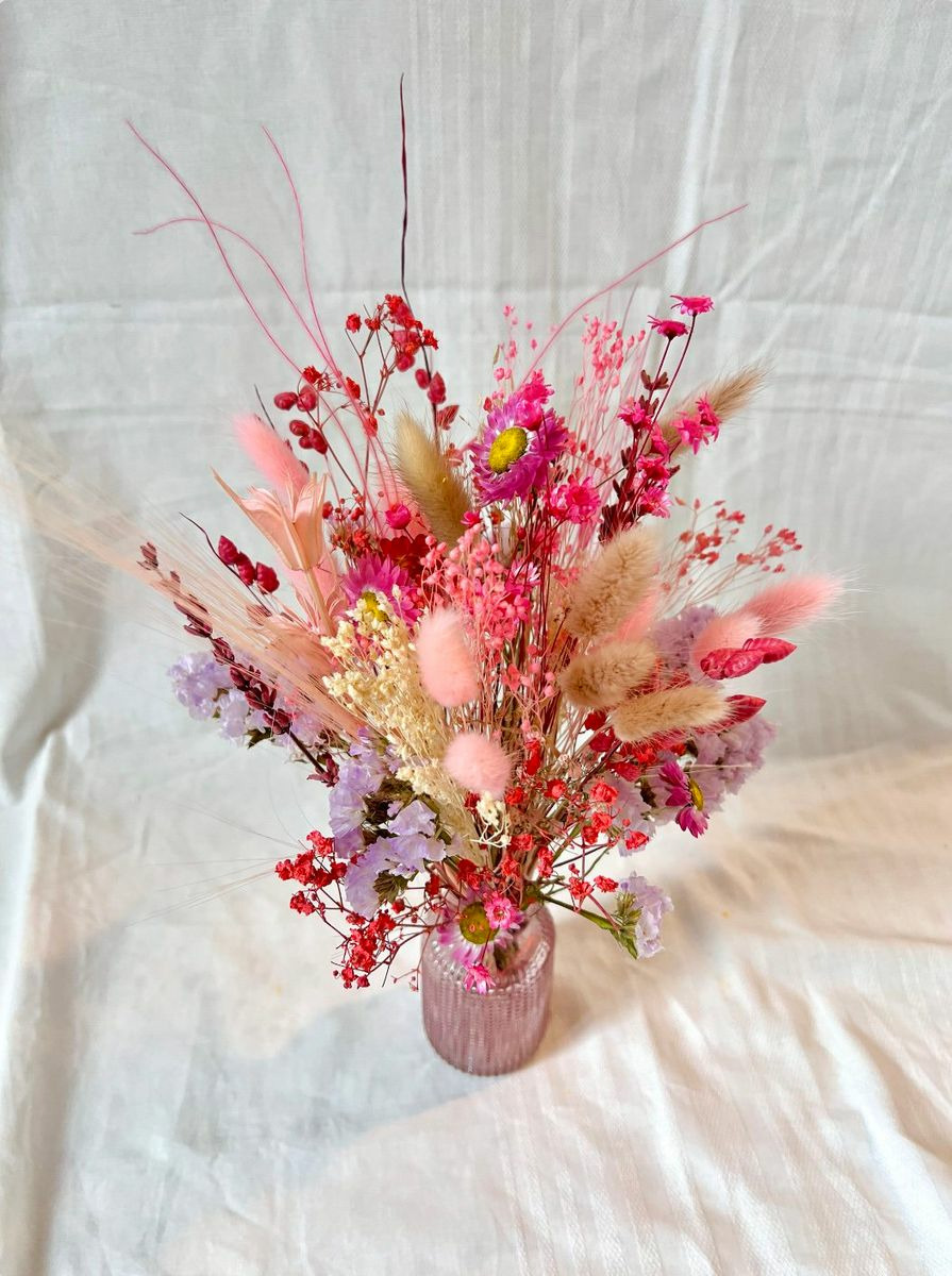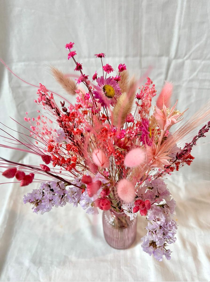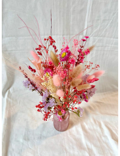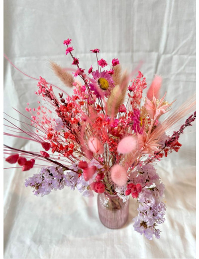 Bouquet composé de fleurs séchées et stabilisées.