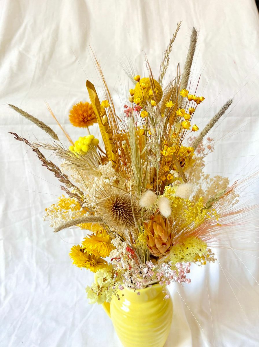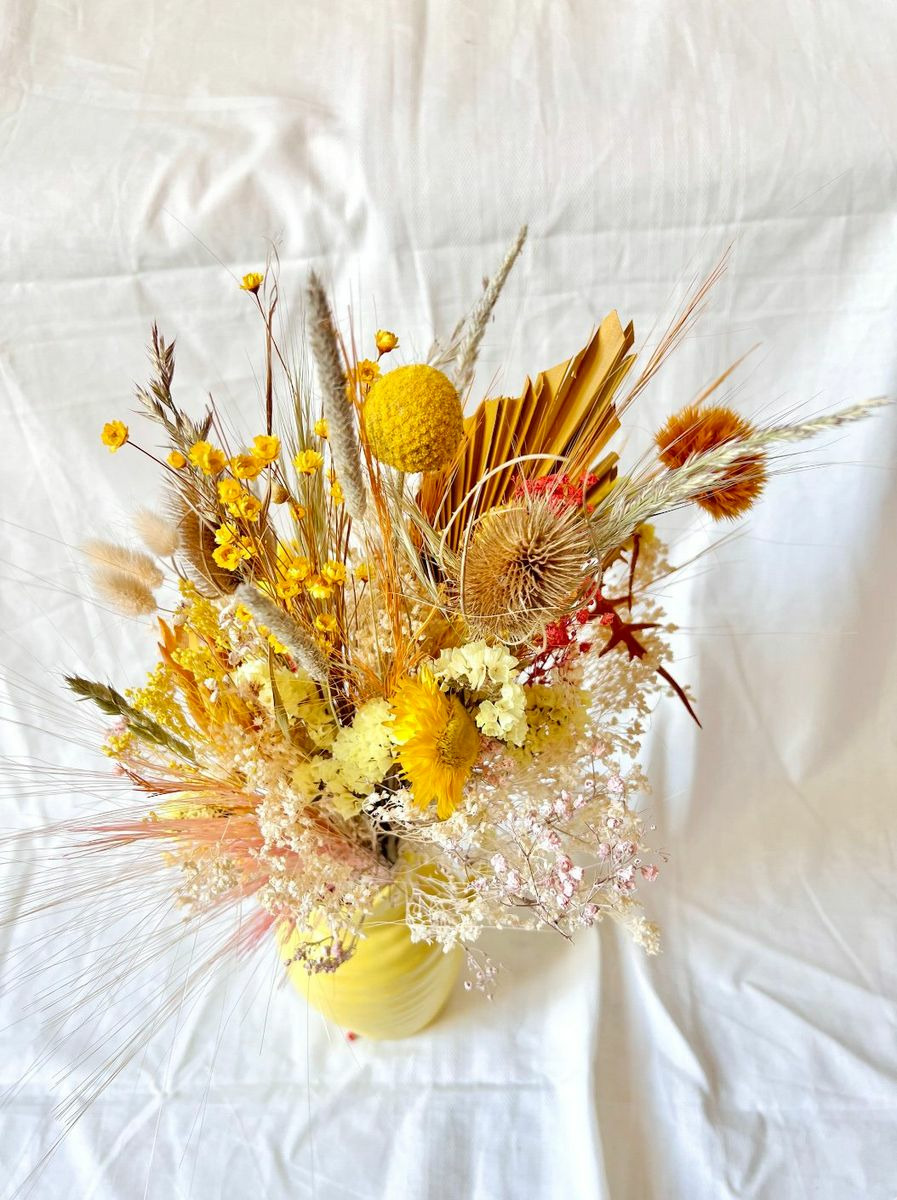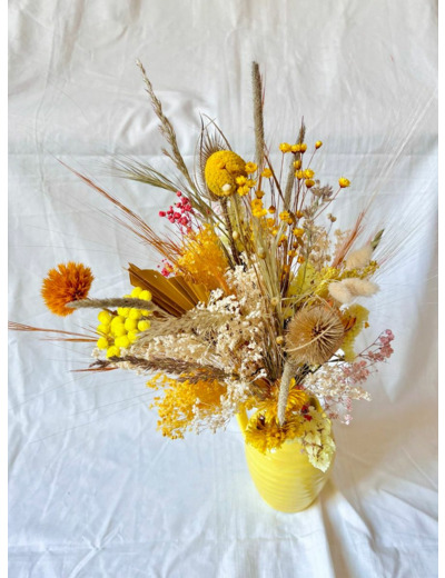 Bouquet composé de fleurs séchées et stabilisées.