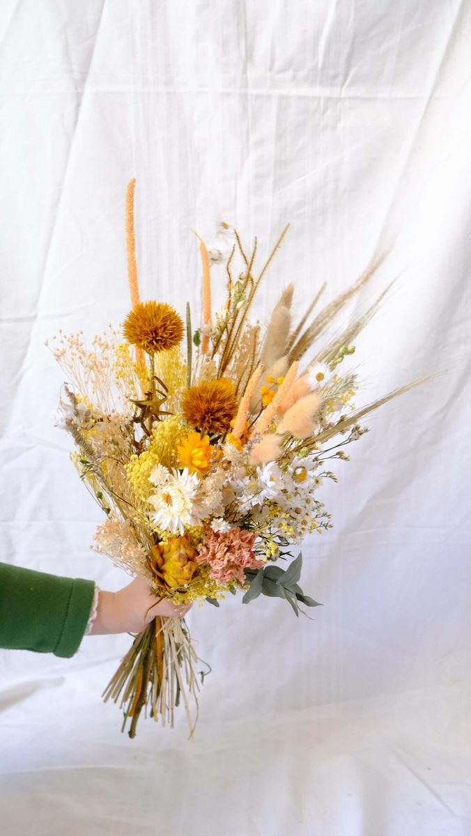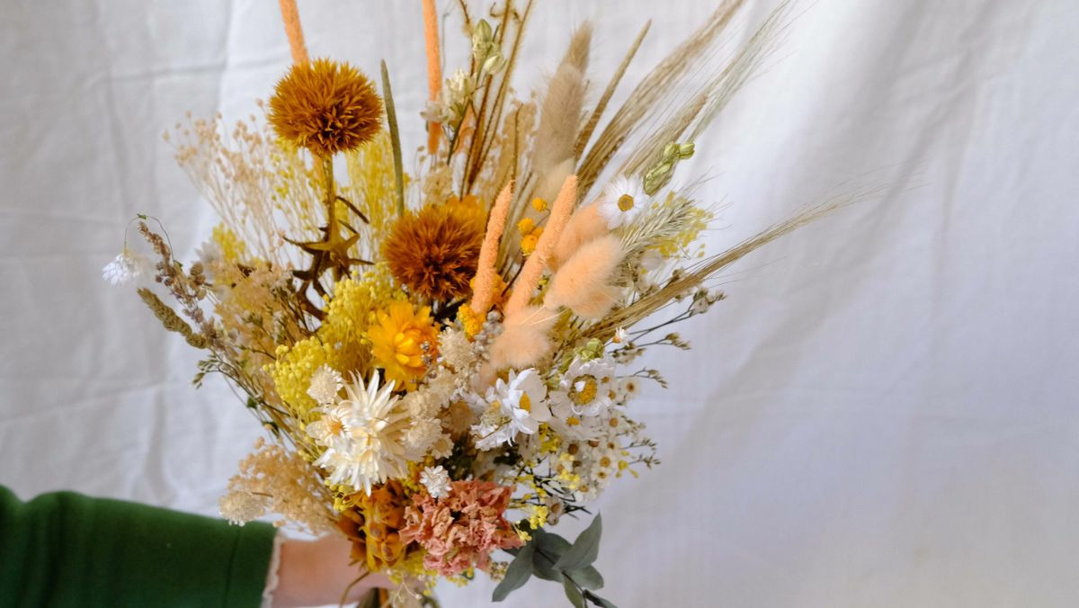 Bouquet composé de fleurs séchées et stabilisées.