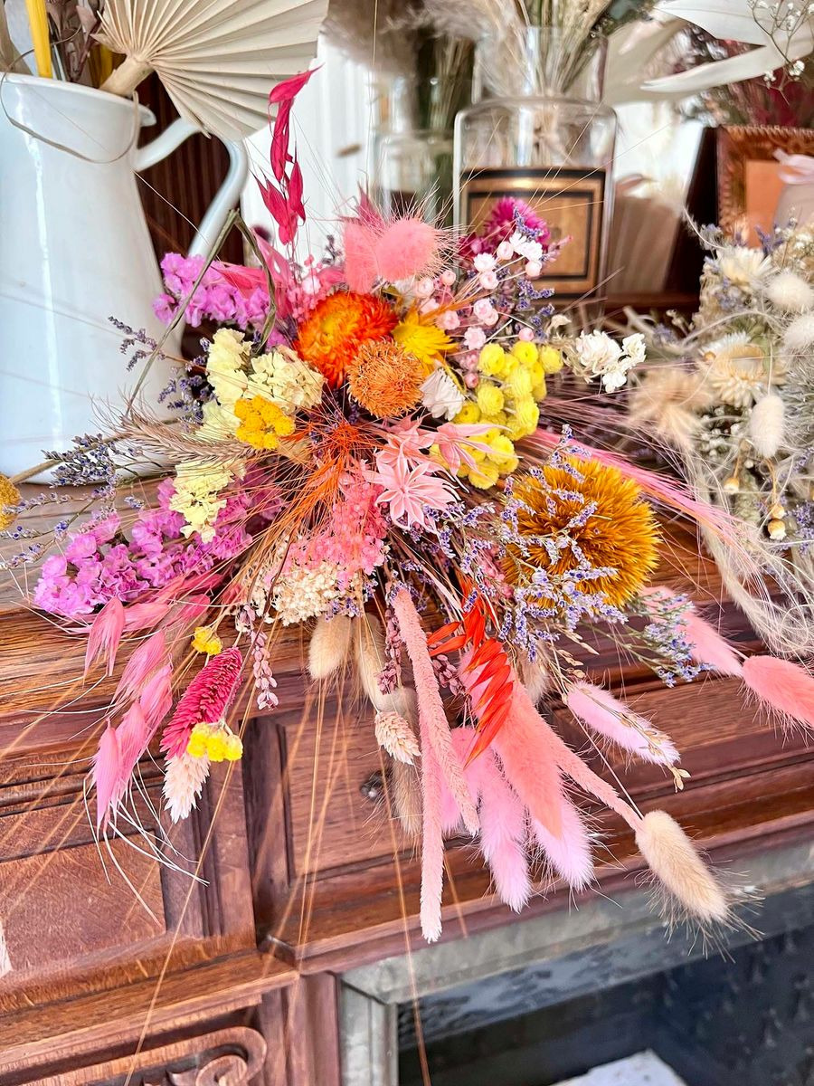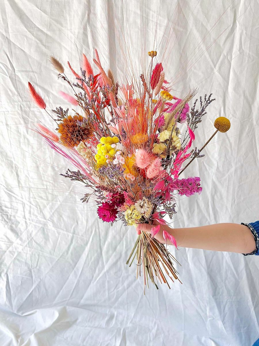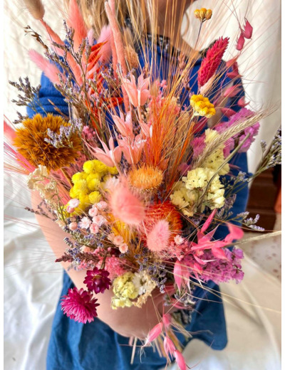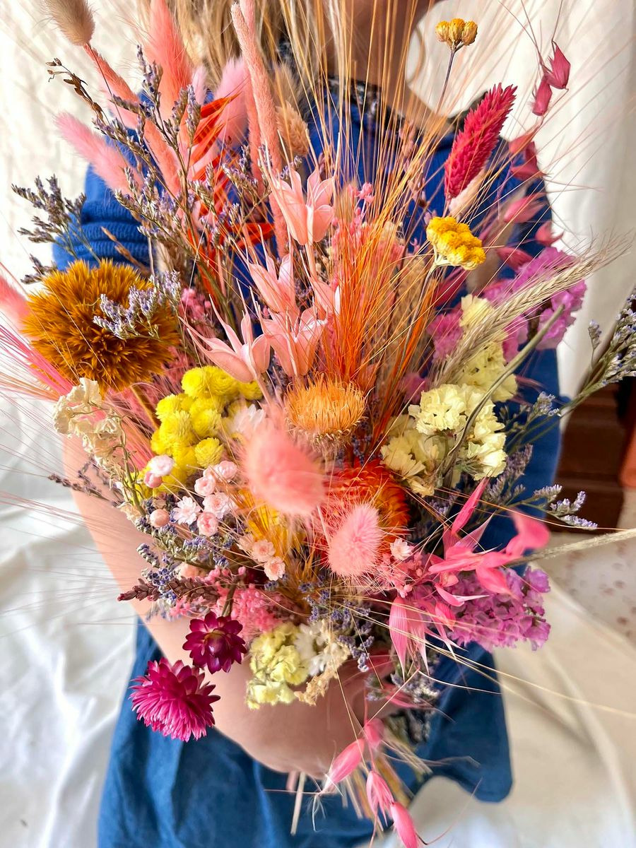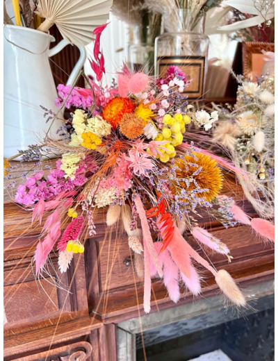 Bouquet composé de fleurs séchées et stabilisées.