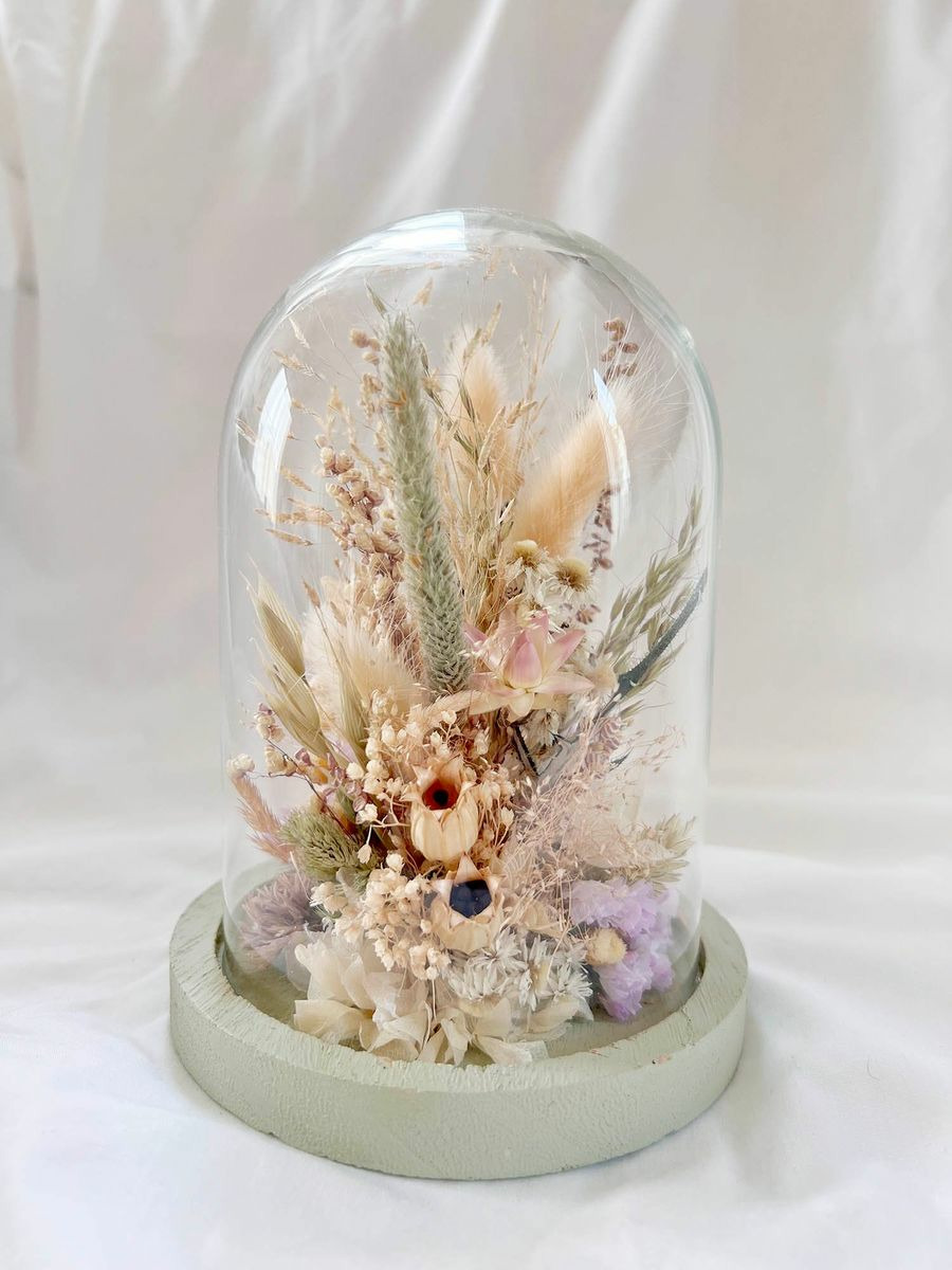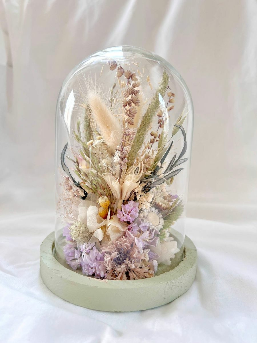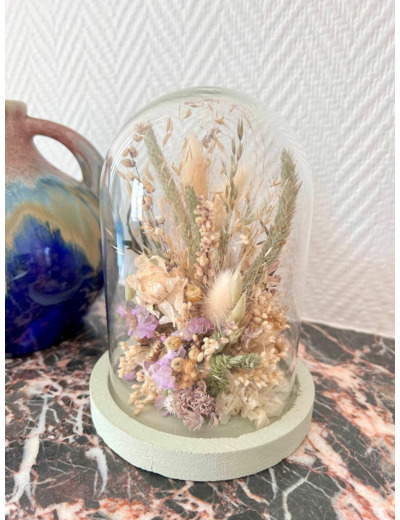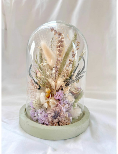 Cloche fleurie composée de fleurs séchées et stabilisées.