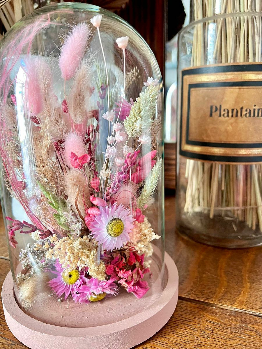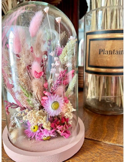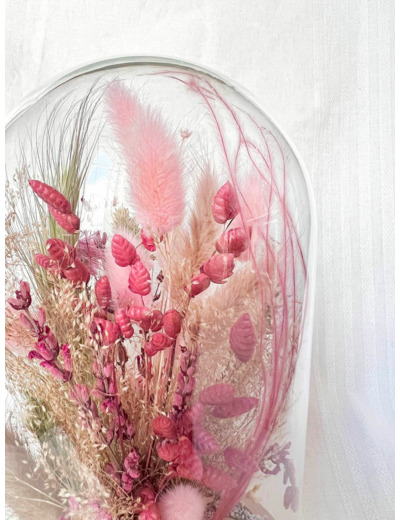 Cloche fleurie composée de fleurs séchées et stabilisées.