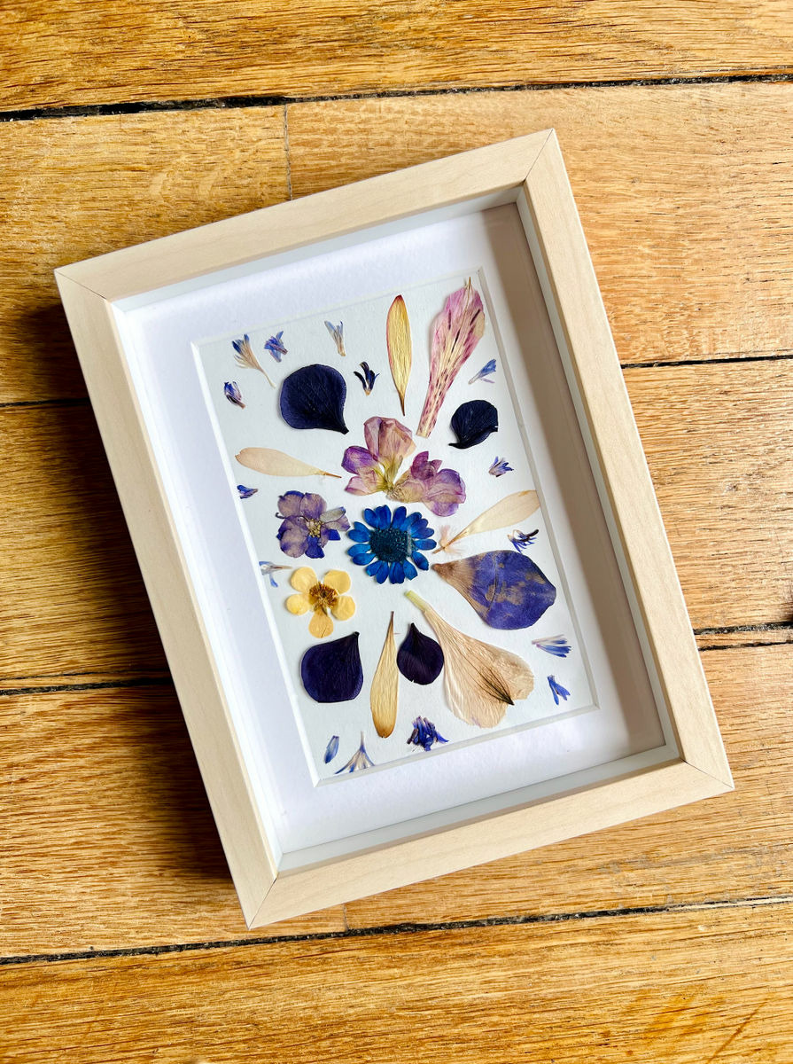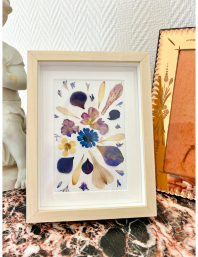 Herbier composé de fleurs séchées (mises sous presse à l'atelier par nos soins)