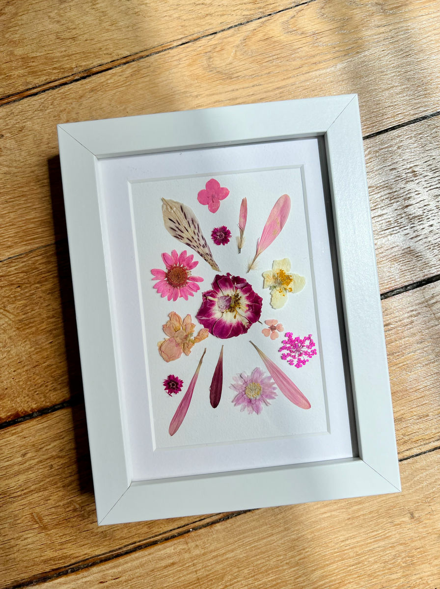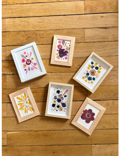 Herbier composé de fleurs séchées (mises sous presse à l'atelier par nos soins)