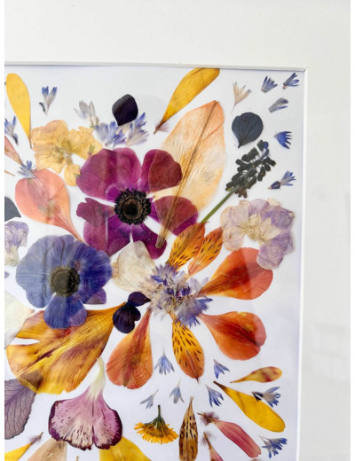 Herbier composé de fleurs séchées (mises sous presse à l'atelier par nos soins)