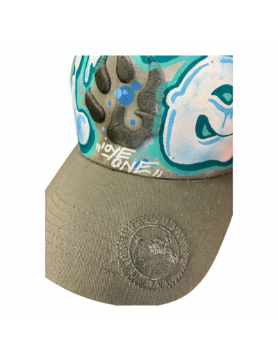 Découvrez une création exclusive : cette casquette a été customisée à la main par l’artiste StreetArt Ioye lors d’un événement spécial.