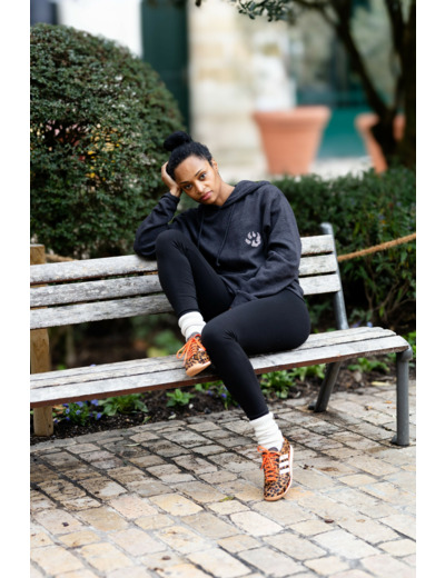Ce sweat à capuche Petite patte Swarovski reflète une démarche responsable : des matières durables, un design intemporel et un sertissage réalisé à la main en France, sans compromis sur la qualité.