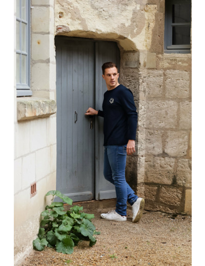 Chaque pièce est ornée à la main en Touraine, dans un atelier artisanal, apportant une touche précieuse et unique à ce t-shirt à manches longues au style épuré.