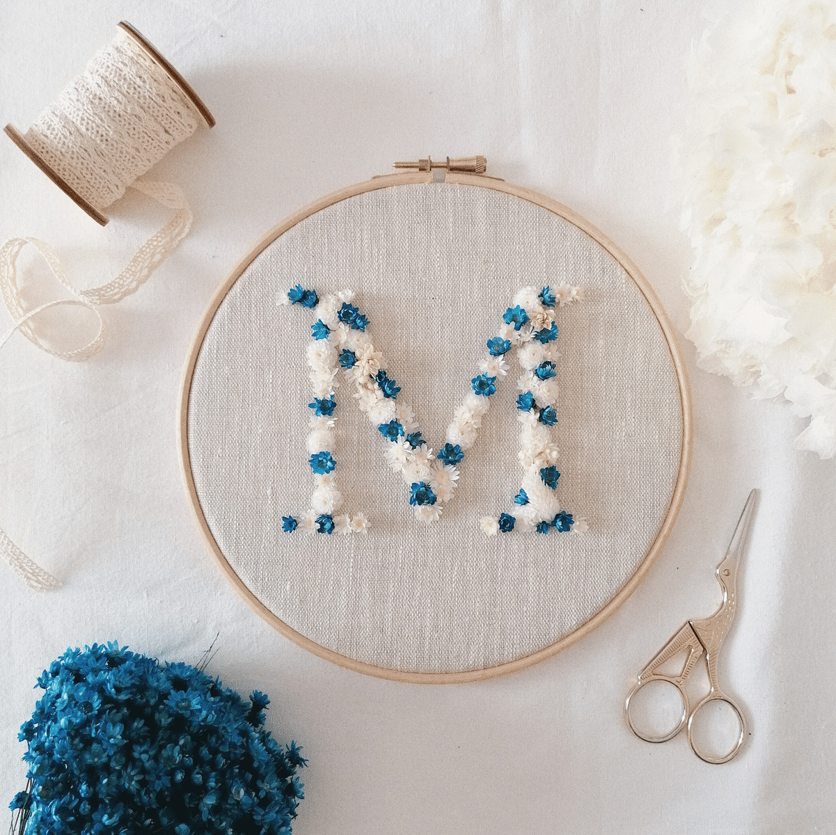 Tambour de fleurs séchées à personnaliser avec la lettre de votre choix.