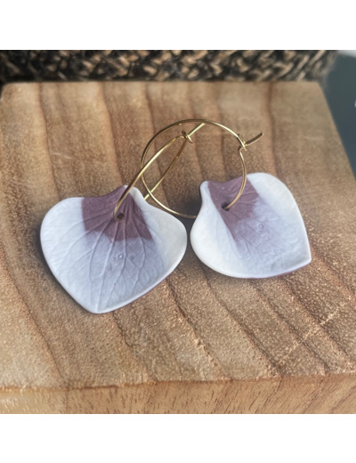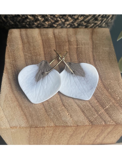 Boucles d'oreille créoles en porcelaine blanche et colorée, teintée dans la masse.