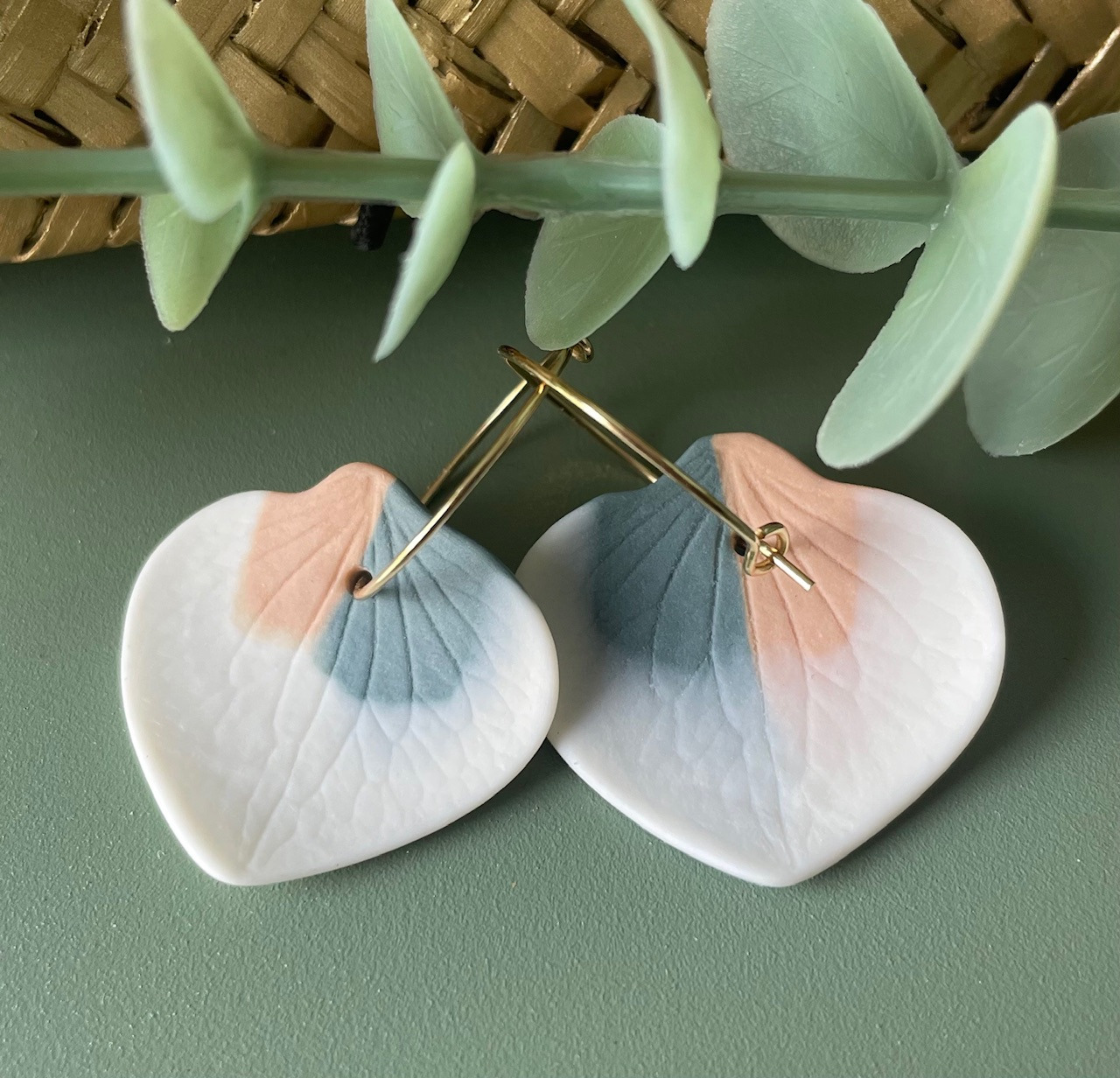 Boucles d'oreille en porcelaine blanche et colorée, teintée dans la masse.