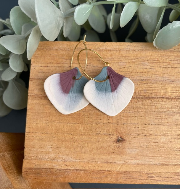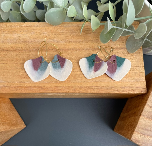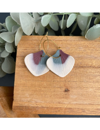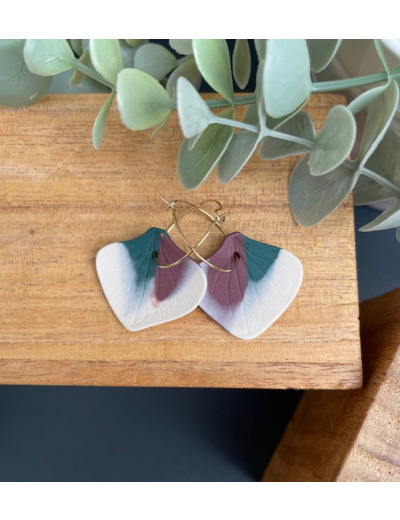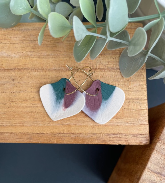 Boucles d'oreille en porcelaine blanche et colorée, teintée dans la masse.