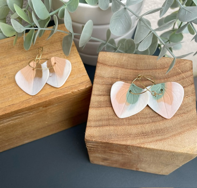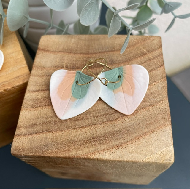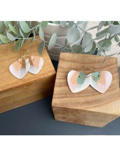 Boucles d'oreille en porcelaine blanche et colorée, teintée dans la masse.