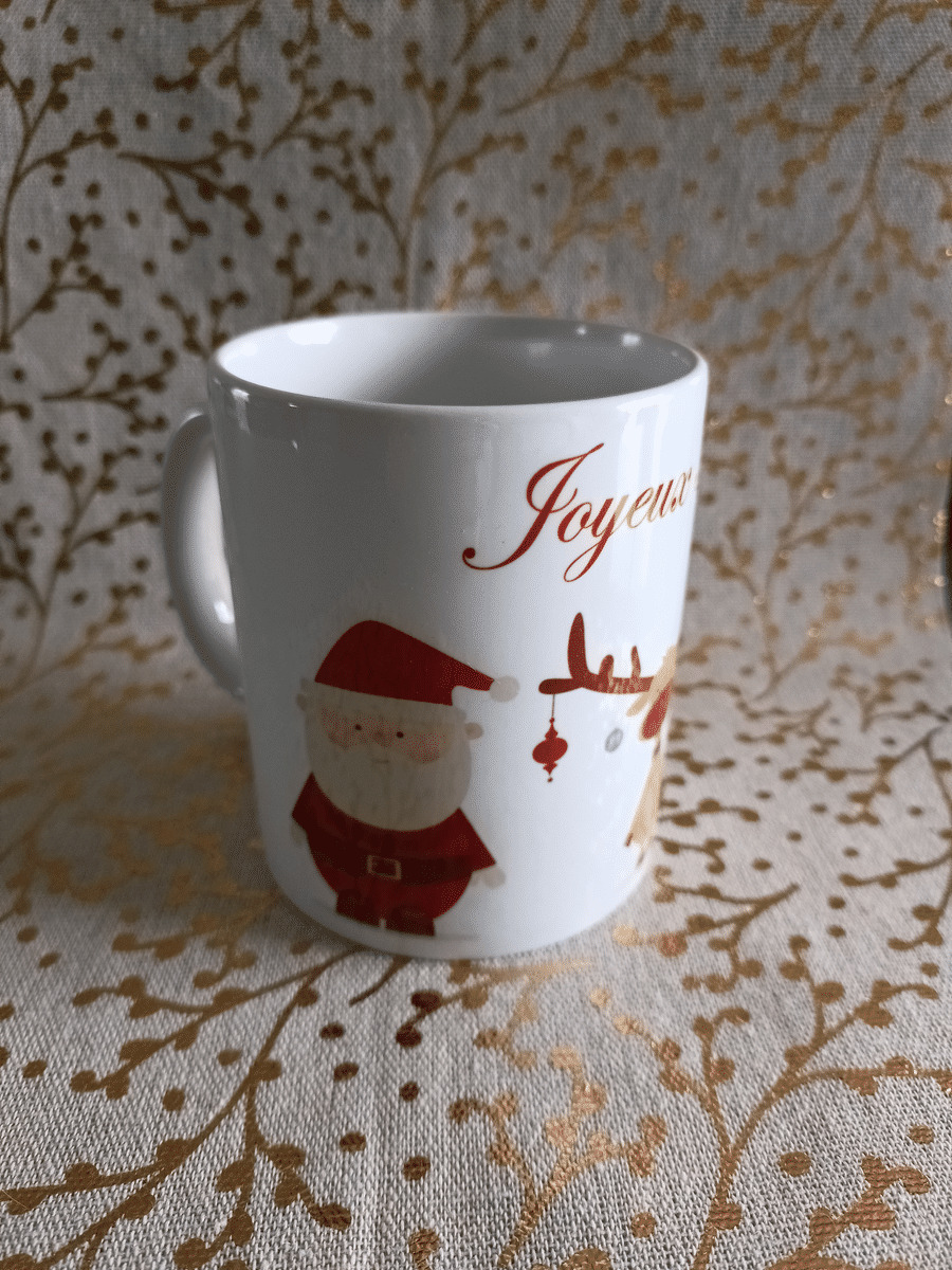 Possibilité de personnaliser votre mug blanc avec une photo ou une illustration de votre choix à l'atelier.
