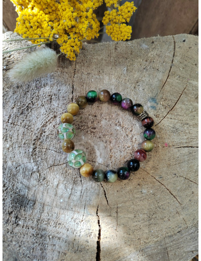 Bracelet en oeil de tigre jaune et multicolor ( 8mm )