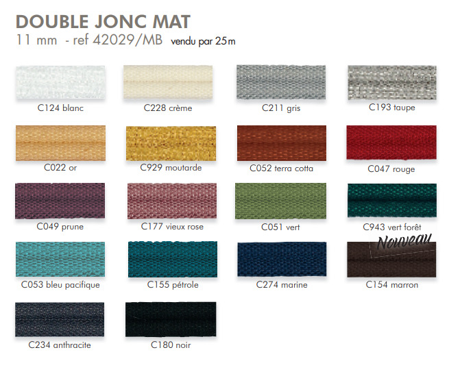 Passementerie utilisée pour border vos coussins de décoration, coussins de bergère etc. … , le modèle 42028 à coudre à son assortie le 42029 à coller . Existe en 18 coloris