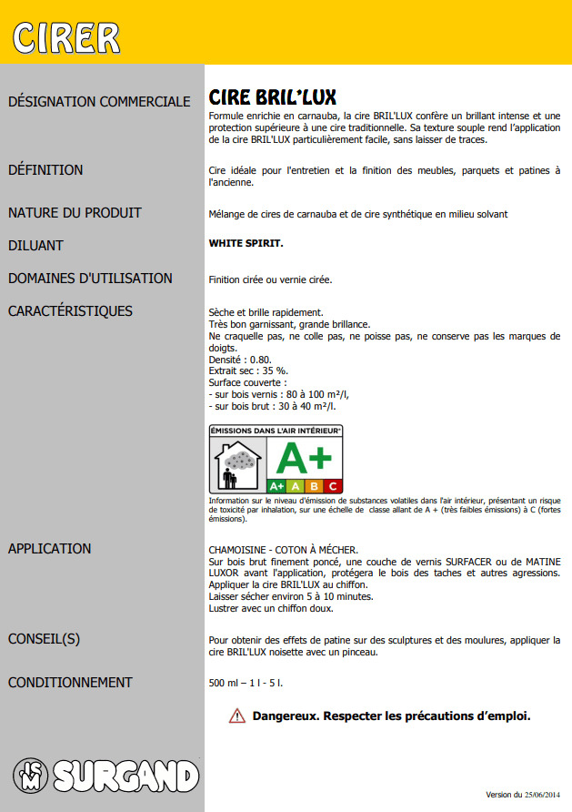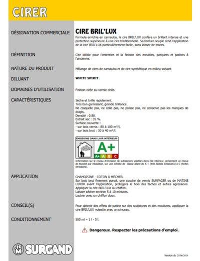 Cire facile d'application enrichie en carnauba. Recommandée pour l'entretien et les finitions antiquaires . Pâte onctueuse qui garantit un brillant intense avec une protection renforcée et durable.