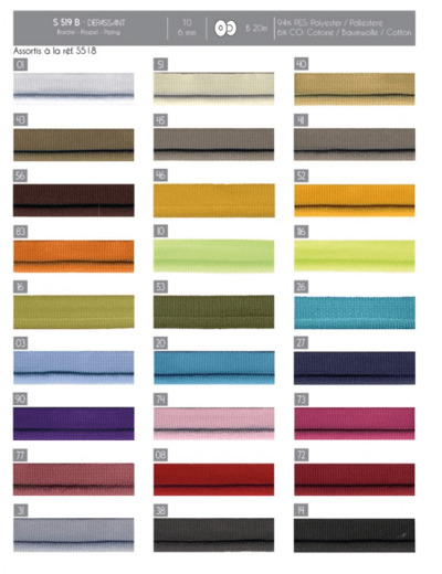 Passementerie utilisée pour border vos coussins de décoration, coussins de bergère etc. … , le modèle 519 à coudre à son assortie le 518 à coller .