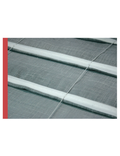 idéal pour la réalisation de vos stores bateaux , evite de realiser un fourreau pour le jonc , et de coudre des anneaux , dans ce tubulaire vous enfilez votre jonc et passez vos cones/cordons , gain de temps assuré !