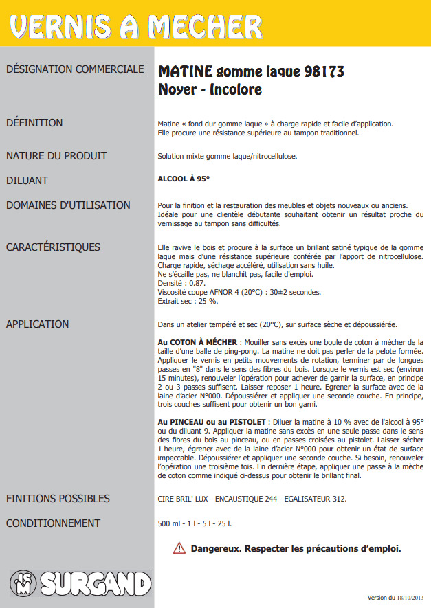 Vernis cellulosique de fond, bouche-pores isolant et anti-taches. En dilution le fond dur est idéal pour la protection contre l'oxydation des métaux en intérieur.
