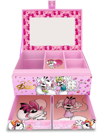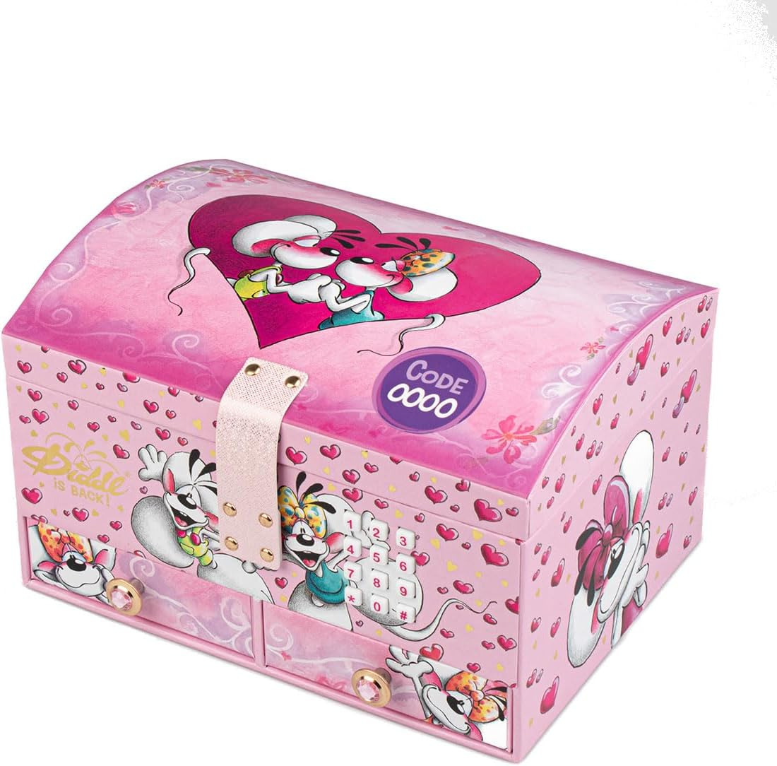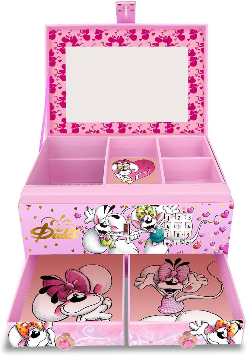 Offrez à votre enfant un véritable coffre aux trésors enchanté avec le Coffret à Bijoux Digicode Diddl ! Cette magnifique boîte à bijoux rose se verrouille avec un digicode : entrez le bon code, et elle s’ouvre en musique pour dévoiler un intérieur bien pensé. Illustré de Diddl et Diddlina, ce coffret au design tendre et coloré plaira à coup sûr. Il comprend : Un plateau amovible à 3 compartiments pour organiser bagues, bracelets ou élastiques, Un grand compartiment inférieur pour les objets plus volumineux, et 2 petits tiroirs à la base pour un rangement optimal. Fonctionne avec 3 piles AG13 (incluses), pour une ouverture musicale dès la première utilisation. Ce coffret est à la fois ludique, décoratif et sécurisé, parfait pour stimuler l’autonomie et l’organisation des plus jeunes. Une idée cadeau idéale pour un anniversaire, Noël ou toute occasion spéciale !