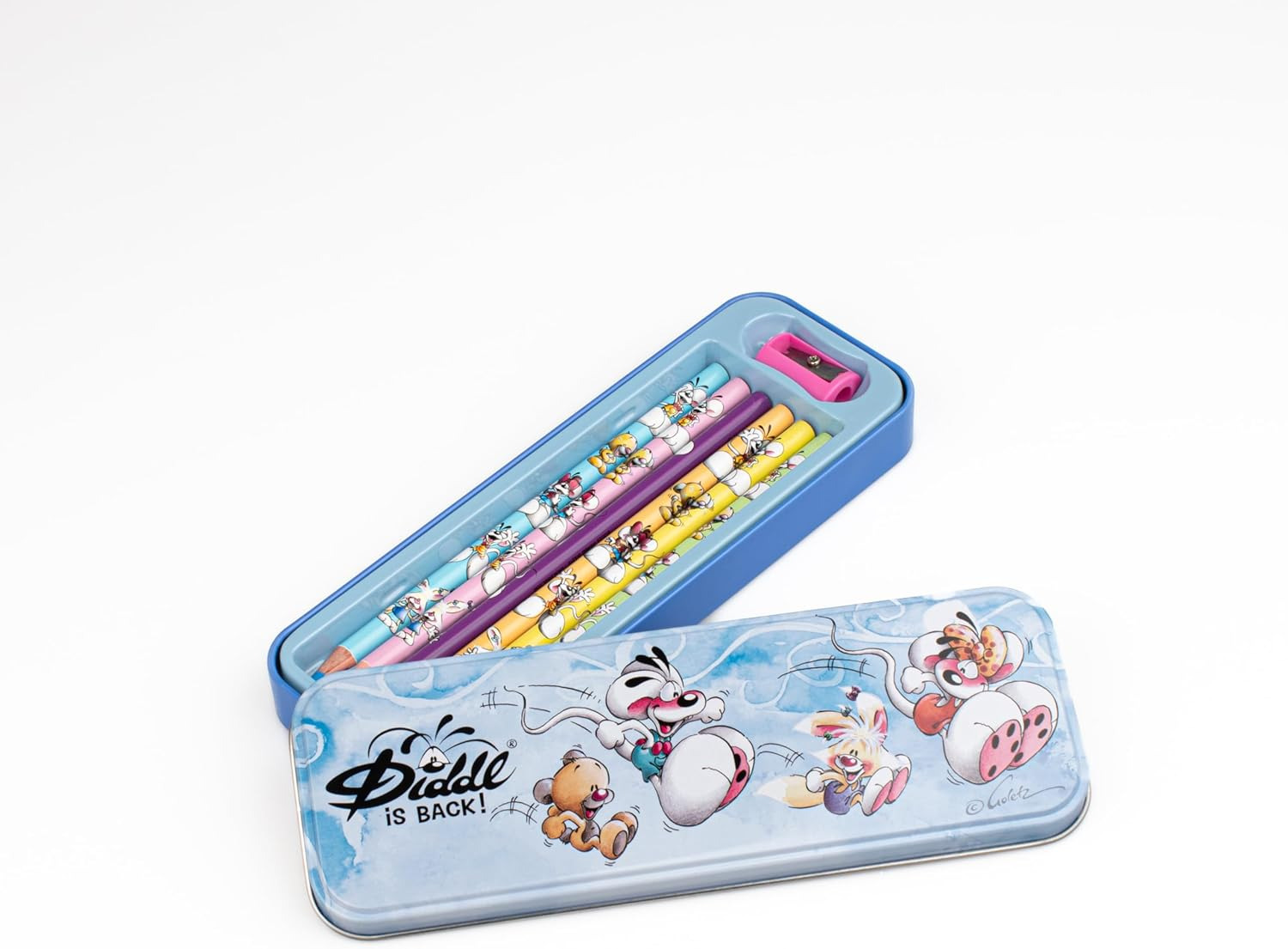 Offrez une touche de magie vintage avec le plumier métal Diddl, un coffret de papeterie coloré qui ravira les enfants comme les adultes nostalgiques. Il contient 6 crayons de couleur illustrés à l’effigie de Diddl, le personnage culte des années 90, ainsi qu’un taille-crayon pratique assorti. Son format compact et sa boîte métallique résistante permettent de le glisser dans un sac d’école, une trousse ou une valise, tout en protégeant parfaitement son contenu. C’est un accessoire idéal pour les activités artistiques à la maison ou à l’école, mais aussi un cadeau parfait pour tout fan de papeterie rétro ou collectionneur de produits Diddl. 🎁 Un coffret utile, ludique et rempli de souvenirs tendres, à offrir sans hésiter !