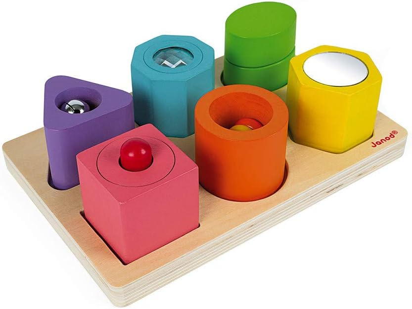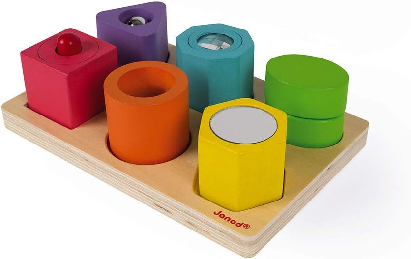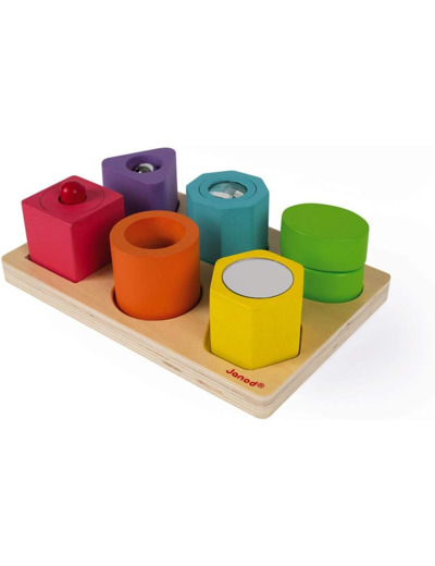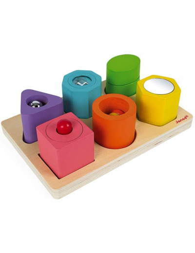 Ce puzzle sensoriel I WOOD tout en bois est idéal pour les premières découvertes de bébé. Il est composé omposé de 6 pièces sensorielles chacune d'une forme différente et d'un plateau trieur comme un puzzle à trou où l'on retrouve ces mêmes formes et couleurs. Chaque pièce stimule un sens de façon différente : ouïe, audition, le toucher. Chaque pièce en bois est de forme, de couleur et de fonction différentes : grelot, kaléidoscope, sons, klaxon, hochet, miroir. Elles sont peintes à l'eau et sont en bois certifié FSC™ (bois issu de forêts gérées durablement). C’est le jeu sensoriel idéal pour stimuler les jeunes esprits : l'ouïe, la vue, le toucher, chaque sens est sollicité à travers les 6 pièces de ce jouet. Dès 1 an, votre enfant développera à travers ce jeu sa motricité fine, sa coordination oeil-main et mettra ses sens en éveil. Contient un puzzle de 6 cubes. Matériau(x) utilisé(s) : Bois (contreplaqué pour socle + hêtre pour les cubes). Tranche d'âge recommandée : de 1 an à 3 ans AVERTISSEMENT DE SÛRETÉ aucun avertissement applicable