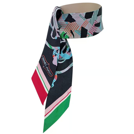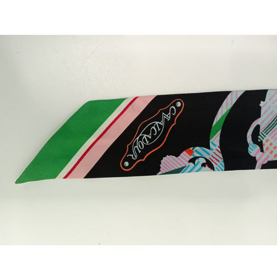 Hermès twilly 86cm "Cavalcadour" quelques infimes traces qui doivent partir au pressing. En très bon état.