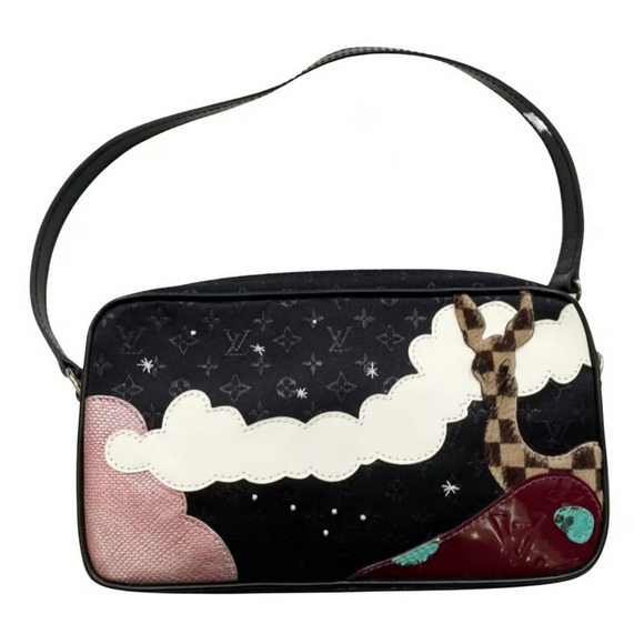 Sac Louis Vuitton en satin noir monogrammé. Modèle limité édition spéciale "Compte de fée" par Julie Verhoeven. Édition Collector en très bon état - comme neuf, livré dans sa boîte d'origine.