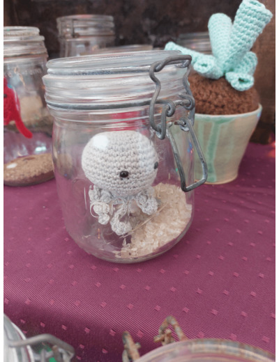 Un petit mot sur nous : Objets de décoration au crochet basés sur du recyclage et mise en valeur d'une tradition féminine avec des couleurs et de l'humour.