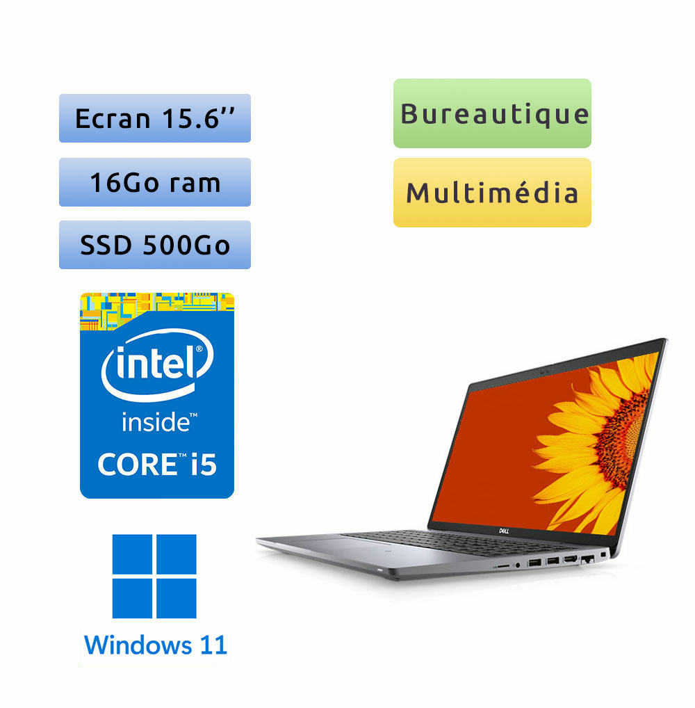 Le Dell Latitude 5510 est un ordinateur portable argenté professionnel de 15,6 pouces, conçu pour offrir de bonnes performances et une connectivité moderne tout en restant assez compact pour la mobilité.