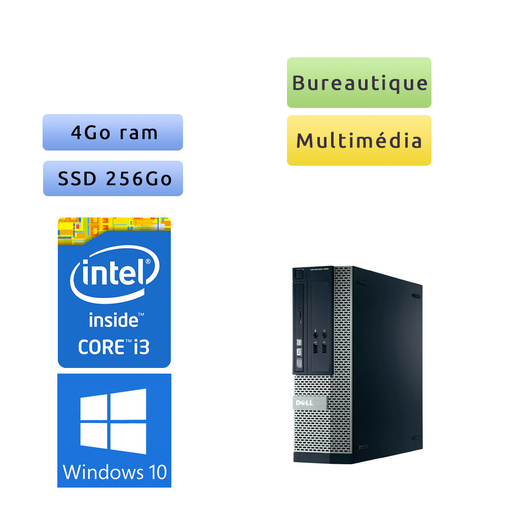 Cette unité centrale Dell petit format s'intègrera discrètement à votre environnement, équipée de sorties vidéos (VGA et HDMI) parfaite pour relier votre pc à un écran ou à votre télévision, cette tour possède une configuration pour de la bureautique et navigation internet.