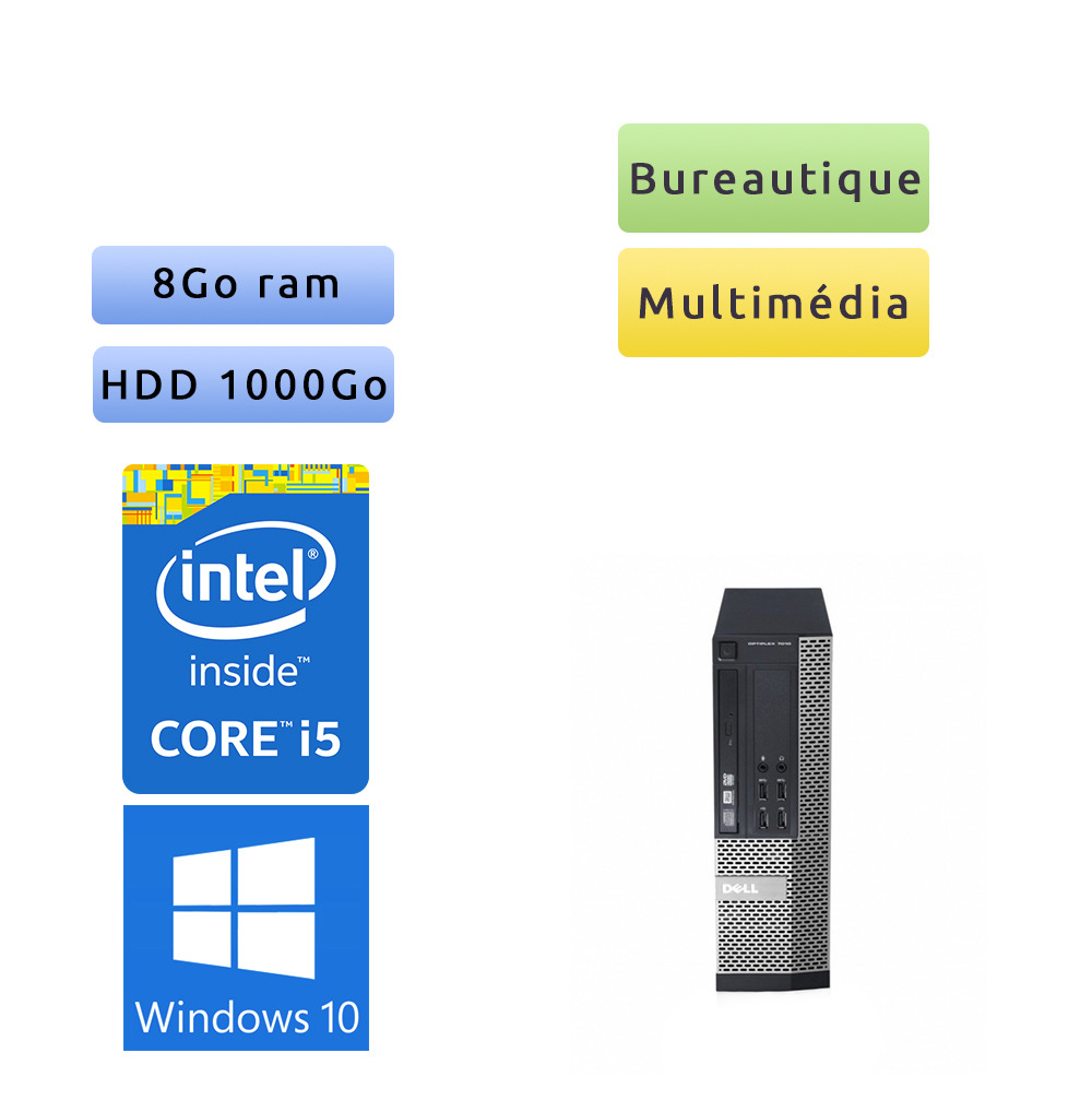 Unité centrale Dell au petit format parfait pour s'intégrer à votre environnement, composé d'un disque de stockage de 1To, archivage adéquat pour vos fichiers, photographies, vidéos et autres documents.