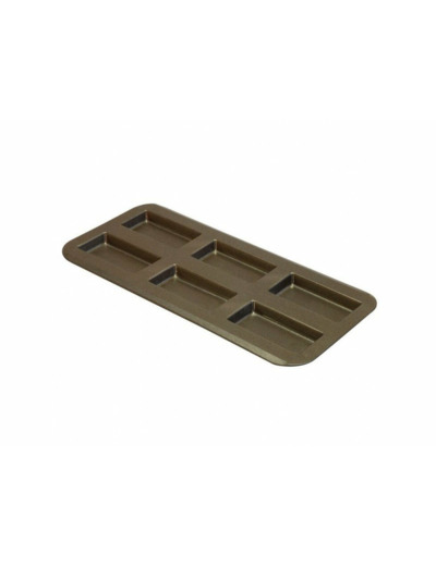 Plaque à financiers à revêtement anti-adhérent de qualité professionnelle. Moule permettant de cuire 6 financiers 10 x 5 cm. Existe aussi pour mini-financiers. Un ustensile de cuisine Gobel, qualité professionnelle, 100% fabriqué en TOURAINE.