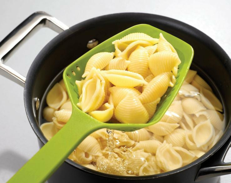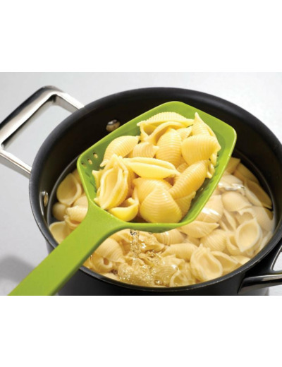 Cet ustensile de cuisine simple mais efficace vous permet de recueillir, d'égoutter et de servir les aliments directement de leur poêle ou de leur plat de cuisson, idéal pour servir les pâtes ou les légumes provenant d'une poêle très chaude
