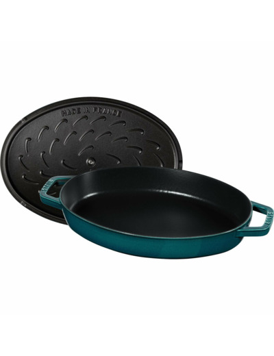 Le plat à poisson en fonte émaillée STAUB La Mer de 32 cm est idéal pour préparer des plats mijotés, du poisson et des légumes. Compatible tous feux et four il peut également s’utiliser sur induction. La couleur de l’émail est obtenu avec la finition spéciale "Majolique", une technique particulière qui permet d’obtenir une brillance unique et une teinte d’une profonde intensité.