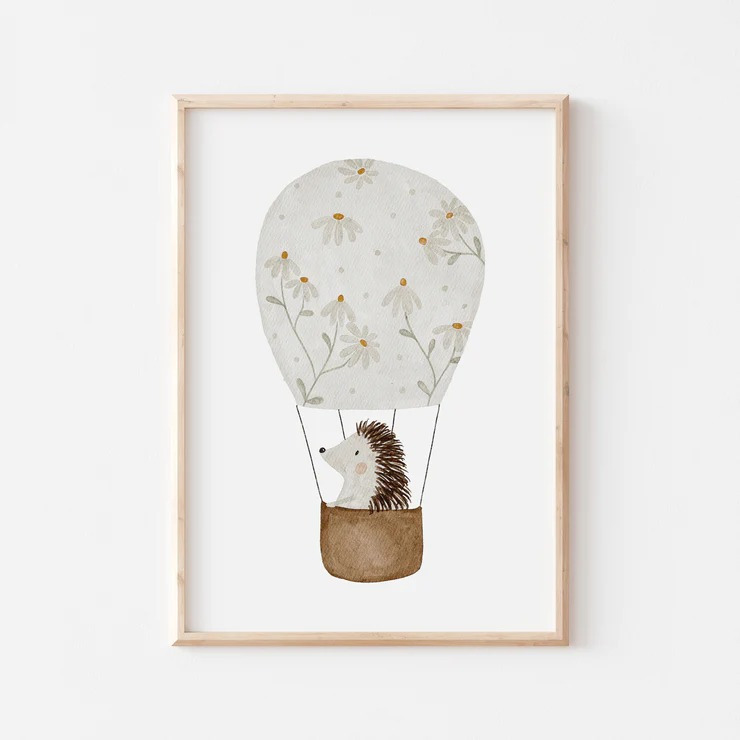 Affiche Enfant encadrée, Hérisson en Ballon