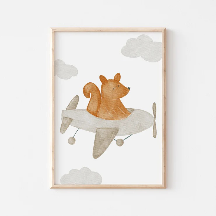 Affiche Enfant encadrée, Renard en Avion