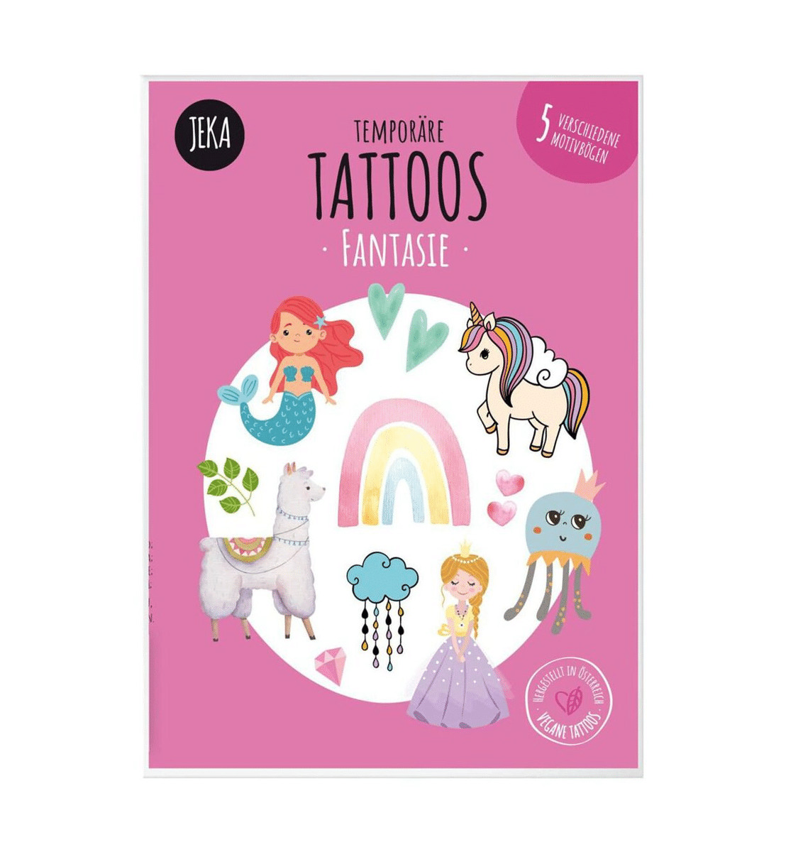 Nos tatouages colorés et originaux de la marque vegan et éco-responsable Jeka sont un jeu d'enfant à utiliser et à enlever. A l'intérieur du paquet, 5 planches de tatouages éphémères bio. Découpez le modèle qui vous plaît, enlevez la pellicule, un peu d'eau, appliquez une minute sur la peau et hop... le tour est joué! La garantie pour vos enfants de passer un moment ludique en famille ou entre amis.