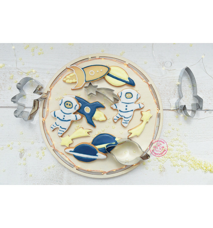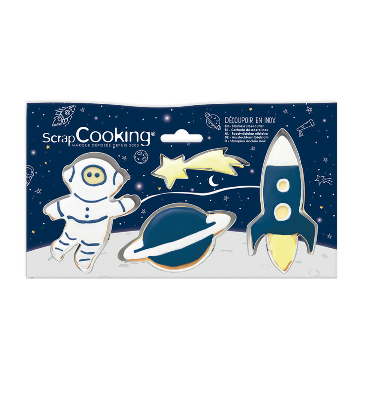 Un kit de 4 emporte-pièces Espace aux différentes formes : un astronaute, une fusée, une étoile filante et une planète pour découper vos biscuits, sablés ou décors pour vos pâtisseries. Idéal en cadeau ou pour recréer la magie des pâtisseries faites à la main avec des douceurs à préparer en famille ou pour animer vos anniversaires.