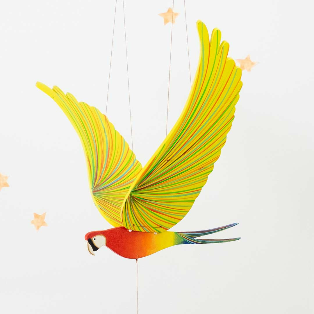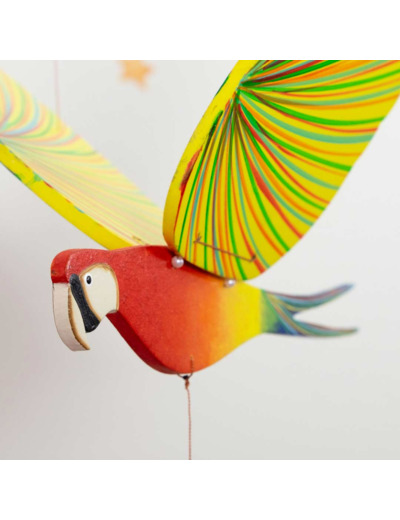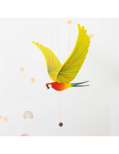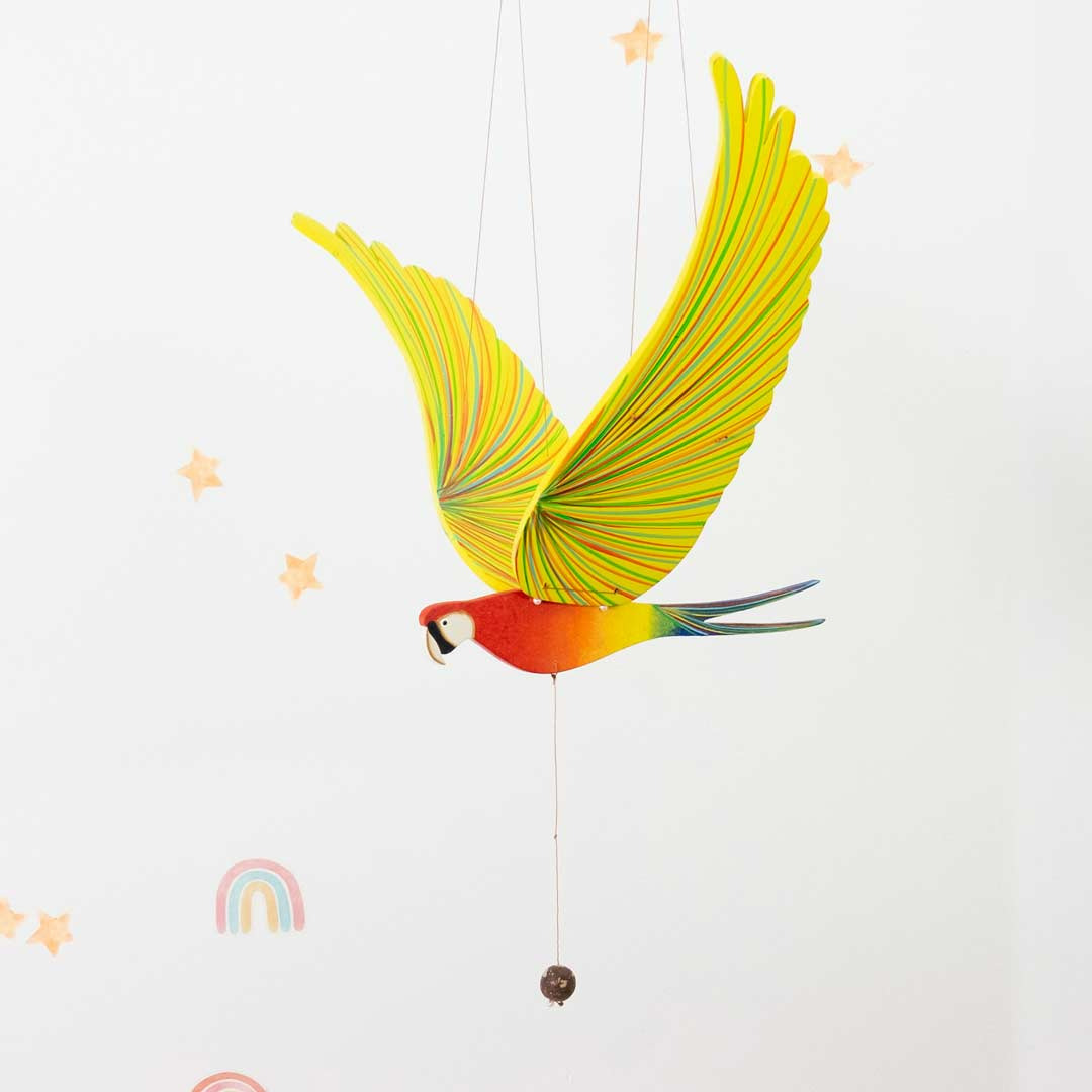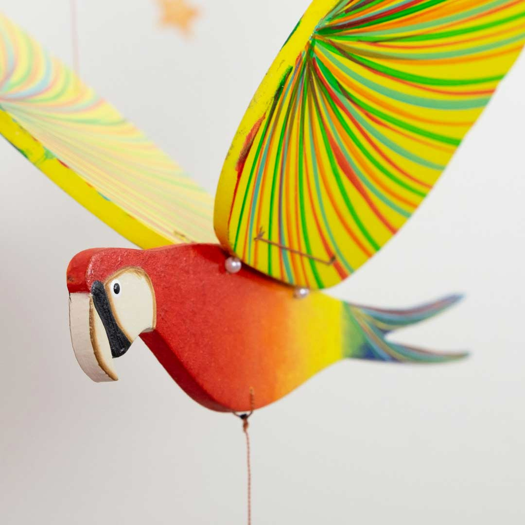 Mobile artisanal en bois – Perroquet Ara Rouge, un cadeau de naissance écoresponsable pour bébé
