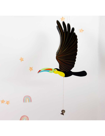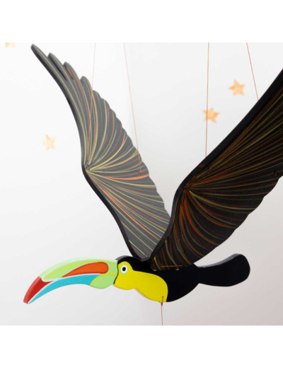 Avec son grand bec coloré et ses contrastes saisissants, le toucan attire tous les regards et émerveille petits et grands. Suspendu dans les airs, il invite à la rêverie et à la découverte.