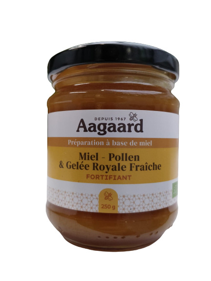 Découvrez le produit préparation à base de Miel, pollen et gelée royale fraîche, 250G de chez Aagaard.