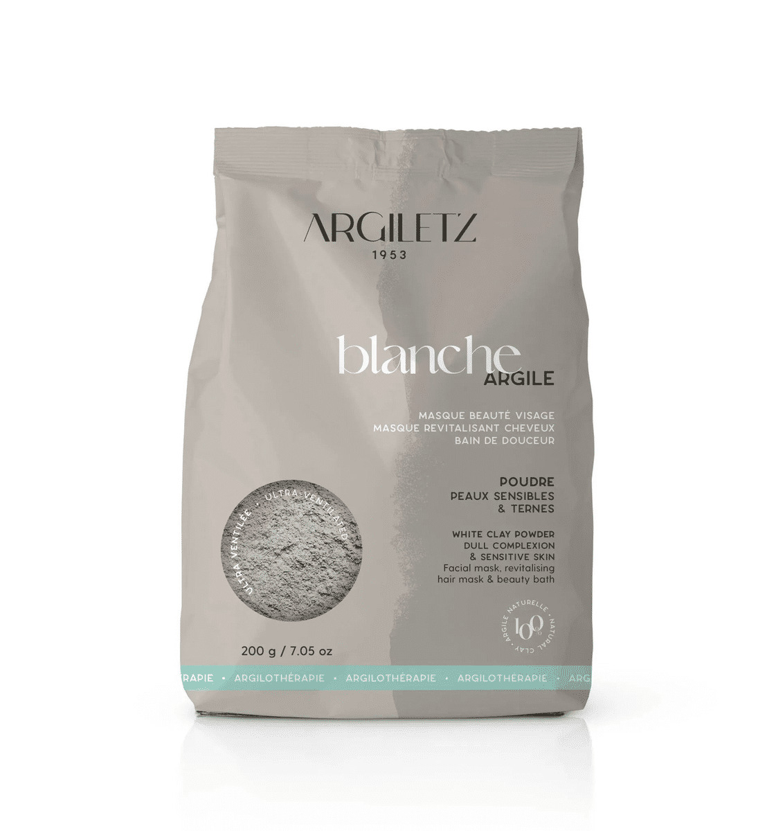Découvrez le produit Argile blanche en poudre ultra ventilée, 200g de la marque Argiletz.