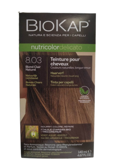 Découvrez la coloration naturelle Nutricolor Delicato 8.03 Blond Clair Naturel, 140ml de chez Biokap.